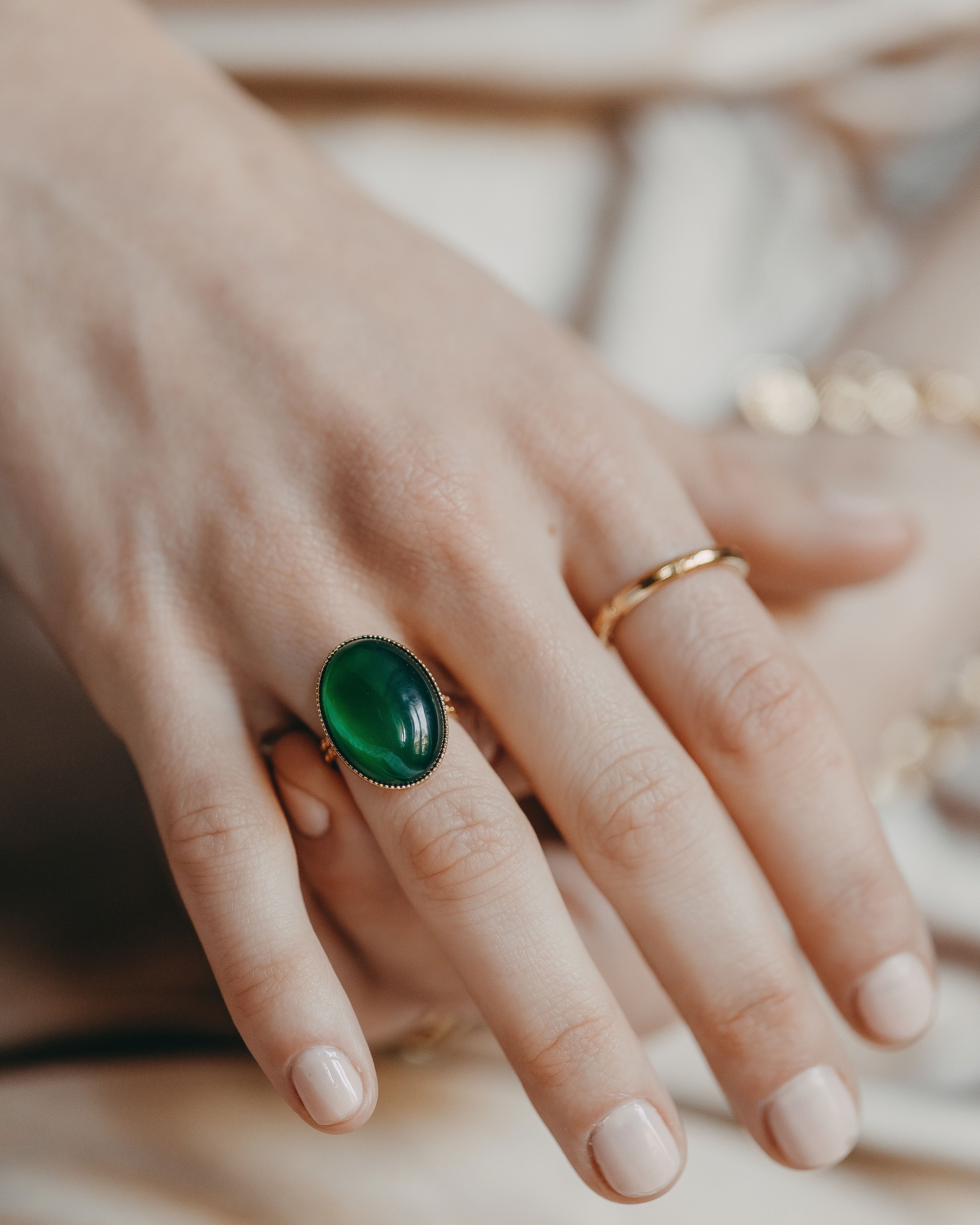 Découvrez notre bague Lina, un intemporel qui s’accorde avec tout ! Dans sa version Agathe verte, elle apportera une touche de douceur à votre look.