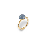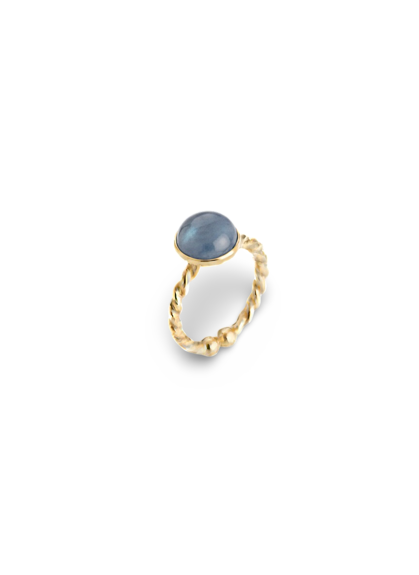 Bague torsadée, ornée d'une pierre bombée qui capte la lumière avec douceur. Son design intemporel en fait un bijou parfait pour toutes les occasions.